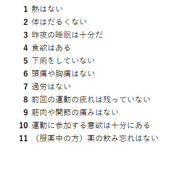体操を行う際には必ず体調チェック表確認してから行ってください。