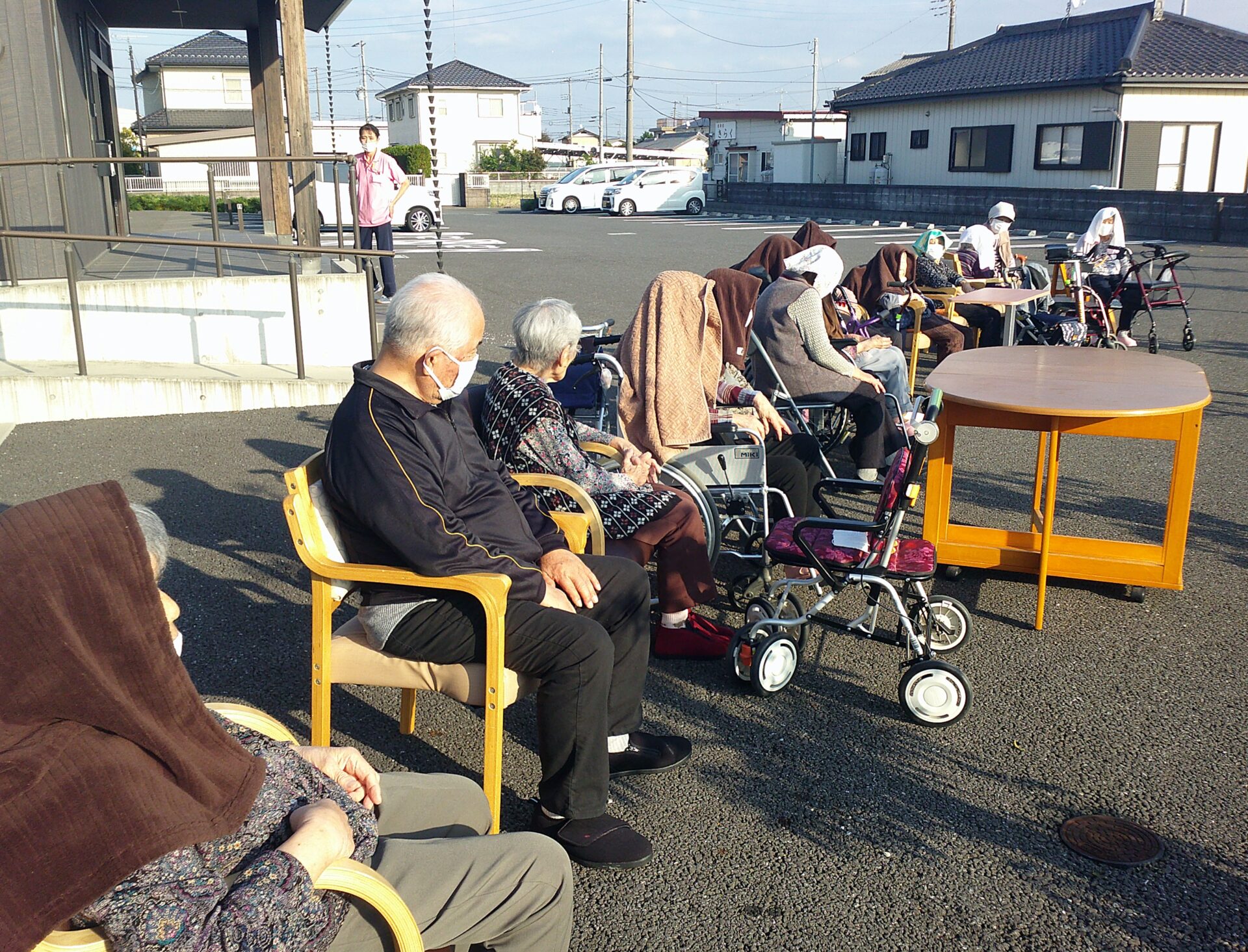 「今日は外でおやつを食べましょう」の職員の一言で、